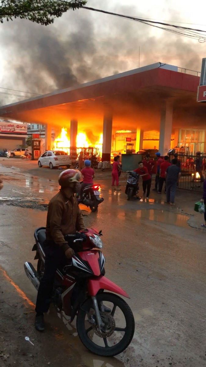 Theo thông tin ban đầu, hơn 17h cùng ngày, nhân viên tại cây xăng trên đang bơm xăng vào xe ô tô, xe máy cho khách thì phát hiện khói lửa bốc lên bên trong kho. Những người này nhanh chóng dùng bình chữa cháy dập lửa nhưng bất thành, ngọn lửa lan và bùng phát mạnh bao trùm cây xăng.