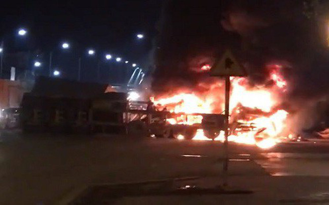 Tại hiện trường, một xe container bị cháy rụi không nhận dạng được biển số, chiếc còn lại cháy trơ khung.