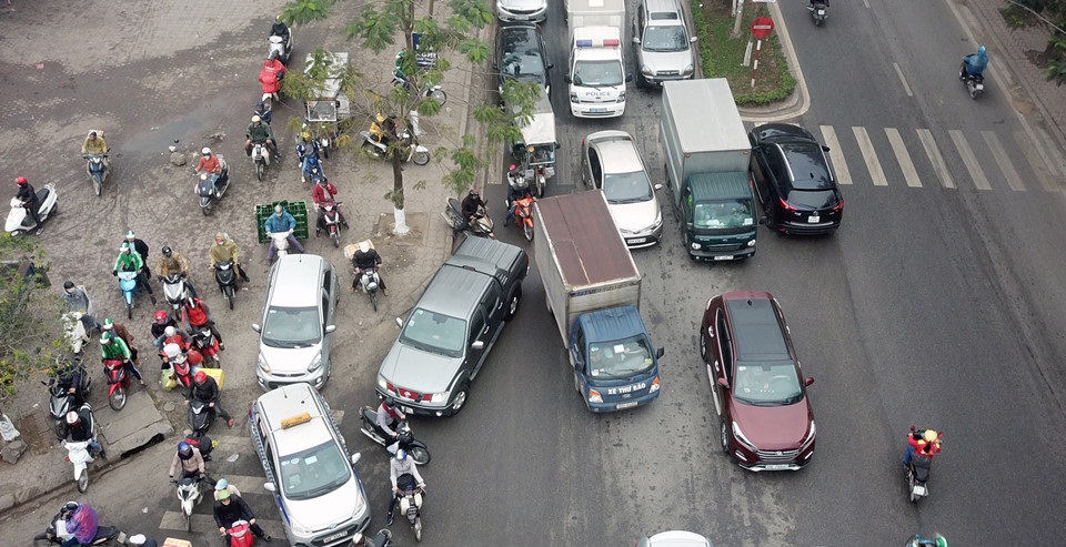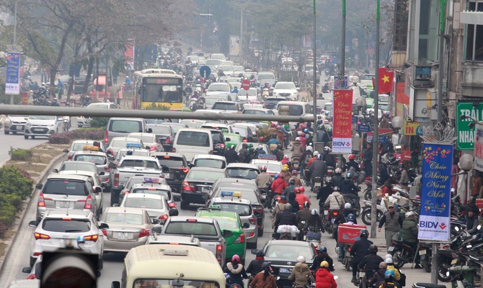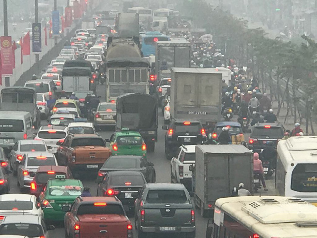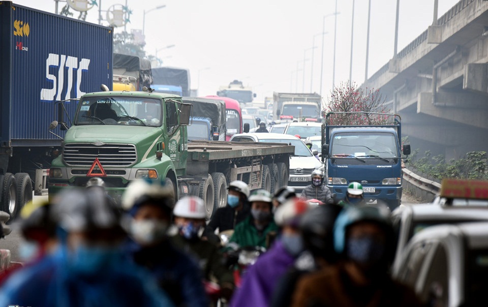Sáng 10/2 (tức 25 Tết), cùng với học sinh, sinh viên, nhiều người dân nghỉ Tết sớm bắt đầu lên đường về quê khiến khiến các tuyến đường cửa ngõ ở thủ đô ùn tắc, kẹt cứng kéo dài hàng km.