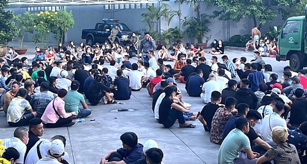 Lực lượng công an đã chốt chặn các lối thoát của tụ điểm ăn chơi này và đưa 239 người gồm 55 nữ và 184 nam có dấu hiệu nghi vấn, không có giấy tờ tuỳ thân về trụ sở làm việc. Qua test nhanh, công an xác định có 78 người có kết quả dương tính với ma tuý.