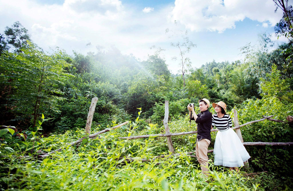 Giây phút lãng mạn nơi hoang sơ của hai vợ chồng.