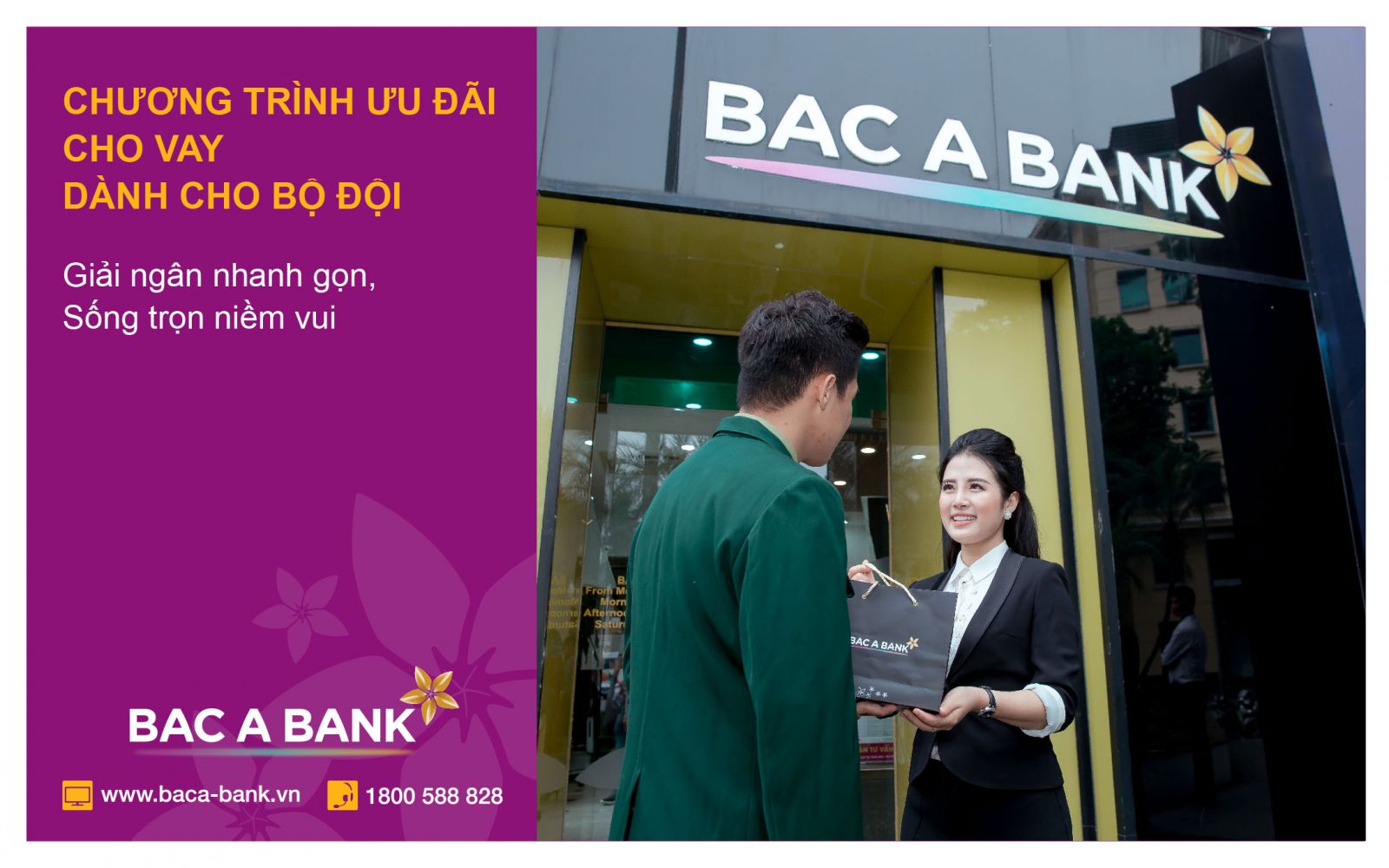 Đúng như lời chị Lan chia sẻ, Chương trình ưu đãi tín dụng dành cho bộ đội cho phép khách hàng vay vốn của BAC A BANK trong thời gian linh hoạt, thủ tục thuận tiện, quá trình xử lý hồ sơ nhanh chóng, cho phép khách hàng hoàn toàn chủ động trong các phương thức trả nợ, giảm áp lực kinh tế và yên tâm công tác.