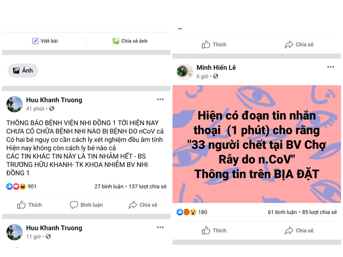 Trước thông tin này, bác sĩ Trương Hữu Khanh, trưởng khoa nhiễm, Bệnh viện Nhi đồng 1 đã khẳng định: “Bệnh viện Nhi đồng 1 tới hiện nay chưa chữa bệnh nhi nào bị bệnh do nCoV. Có hai bé nguy cơ cần cách ly xét nghiệm đều âm tính. Hiện nay, không còn cách ly bé nào cả. Các tin khác tin này đều là tin đồn nhảm”.