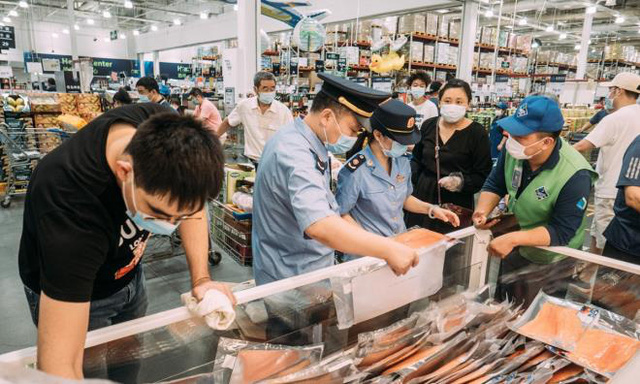 Theo tờ Beijing Youth Daily, virus Sars-CoV-2 đã được phát hiện trên các tấm thớt làm cá hồi tại khu chợ, buộc ban quản lý phải hủy bỏ toàn bộ số cá hồi tại đây. Hai chuỗi siêu thị lớn trong thành phố nhập hàng từ chợ này, cũng loại bỏ số cá hồi ngay trong đêm 12/6.