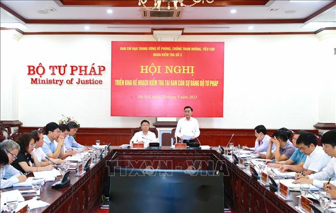 Ngày 28/9, Đoàn Kiểm tra số 3 của Ban Chỉ đạo Trung ương về phòng, chống tham nhũng, tiêu cực do Ủy viên Bộ Chính trị, Bí thư Trung ương Đảng, Chủ nhiệm Ủy ban Kiểm tra Trung ương Trần Cẩm Tú làm Trưởng đoàn, đã làm việc với Ban cán sự đảng Bộ Tư pháp, triển khai Kế hoạch kiểm tra công tác thể chế hóa chủ trương, chính sách của Đảng về phòng, chống tham nhũng, tiêu cực thành pháp luật của Nhà nước.