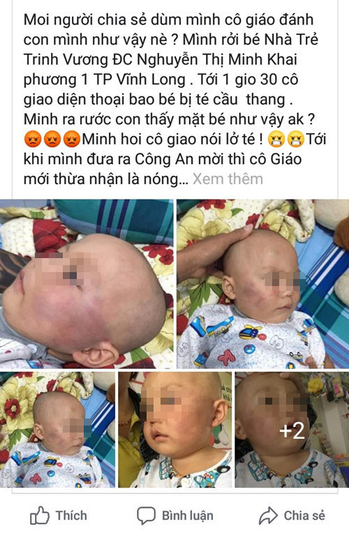 Đến 14h20 cùng ngày, khi cha bé Huy đến rước, cô H. nói dối là bé bị ngã cầu thang nên mặt bị bầm. Không tin vào việc bé bị ngã cầu thang nên gia đình đã đưa bé Huy đến công an trình báo, theo Thanh niên.
