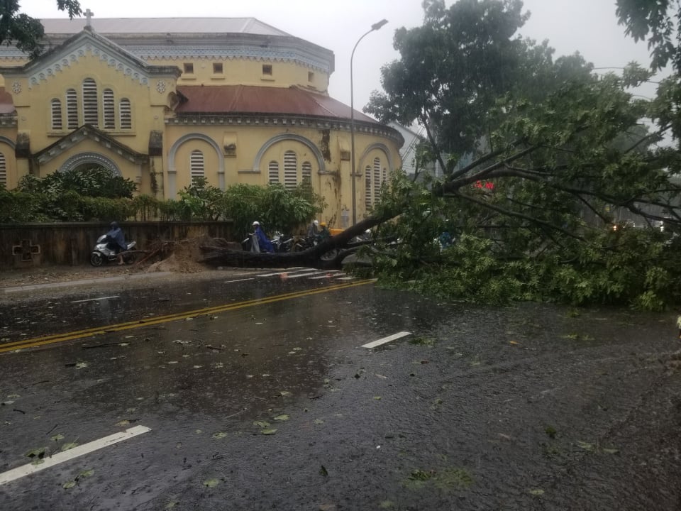 Bão số 5 đang áp sát đất liền, Thừa Thiên-Huế xuất hiện lốc xoáy quật ngã cây cối. Theo ghi nhận PV Người Đưa Tin Pháp luật, đến 7h30 ngày 18/9, dù bão số 5 chưa đổ bộ nhưng tại Huế đã xuất hiện mưa to. Các địa phương dọc bờ biển của tỉnh này gió giật rất mạnh. Vào lúc 9h ngày 18/9, thời tiết tại TP.Huế mưa rất to, gió thổi mạnh khiến nhiều cây xanh trên các đường phố đổ gãy.