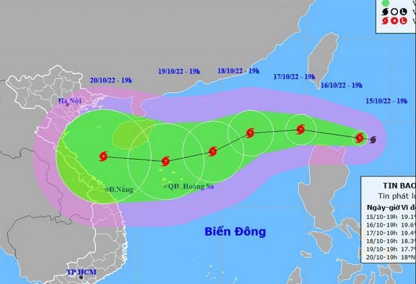 Hồi 04h ngày 17/10, vị trí tâm bão ở vào khoảng 19,8 độ Vĩ Bắc; 117,2 độ Kinh Đông, cách quần đảo Hoàng Sa khoảng 720km về phía Đông Bắc. Sức gió mạnh nhất vùng gần tâm bão mạnh cấp 11-12 (103-133km/giờ), giật cấp 14, di chuyển theo hướng Tây với tốc độ khoảng 20km/h.