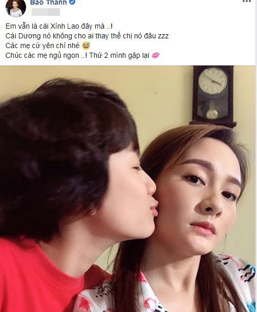 Trước tin đồn thất thiệt, nữ diễn viên Bảo Thanh nhanh chóng đáp trả bằng cách đăng bức hình với cô em út Bảo Hân và chia sẻ: "Em vẫn là cái Xính Lao đây mà! Cái Dương nó không cho ai thay thế chị nó đâu. Các mẹ cứ yên chí nhé!".