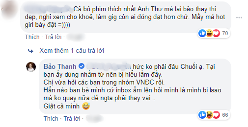 Không những thế khi bị hỏi chính xác thực hư về tin đồn, Bảo Thanh không ngần ngại trả lời: "Không phải đâu! Tại bạn ấy dùng nhầm từ nên bị hiểu lầm đấy. Chị vừa hỏi các bạn trong nhóm "Về nhà đi con" rồi. Hẳn nào bạn bè mình cứ inbox ầm lên hỏi mình là mình bị làm sao mà không quay nữa để ngta phải thay vai. Giật cả mình!"