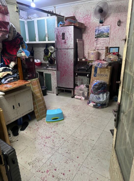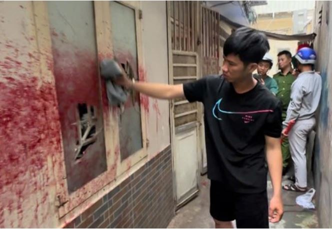 Sau khi kiểm tra, ông N phát hiện một nam thanh niên dùng gậy đập vỡ cửa kính, ném bịch nước sơn pha mắm tôm vào nhà rồi bỏ chạy.