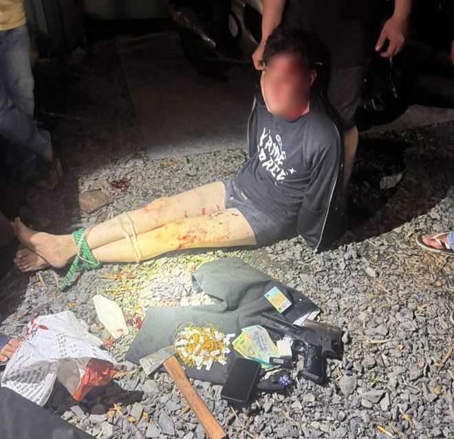 Khám xét ban đầu, lực lượng chức năng thu giữ tang vật gồm, một số lượng vàng nghi là tài sản bị cướp, một khẩu súng (nghi là súng nhựa), một cây búa và chiếc xe máy dùng để gây án.