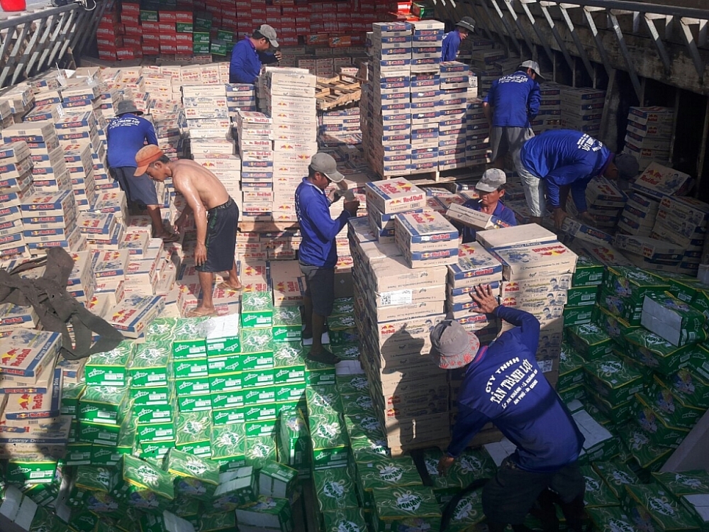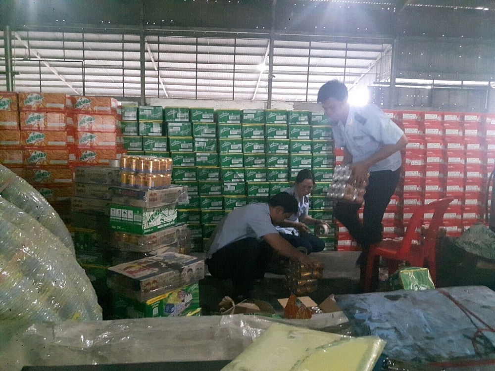 Kết quả kiểm tra cho thấy, hàng hóa gồm: Trên 17.345 thùng nước giải khát có gaz, xuất xứ Campuchia; trên 29.630 thùng nước tăng lực hiệu RedBull, xuất xứ Thái Lan. Ngoài số hàng hóa trên, cơ quan Hải quan còn phát hiện và thu giữ 14 tấm decal nhãn phụ (1.653 nhãn phụ) của Công ty TNHH MTV SX TMDV Minh Tiến; 26 tấm decal (2.787 nhãn) phụ của Công ty Toàn Cầu.