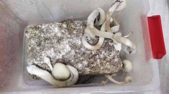 Tiến hành khám xét khẩn cấp nơi ở của đối tượng, lực lượng công an đã thu giữ 1 thùng nhựa, 2 xi lanh chứa bào tử nấm đã sử dụng hết, 1 túi gạo lứt, xơ dừa để trồng nấm. Qua giám định, số cây nấm khô thu được là ma túy loại psilocybin có trọng lượng là 26,458 gam.
