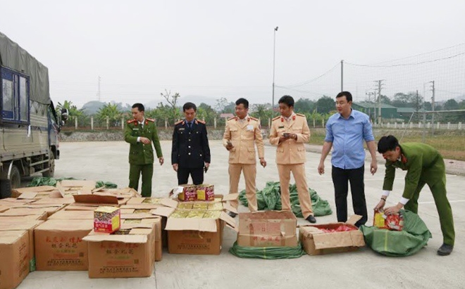 Qua kiểm tra lực lượng chức năng đã phát hiện gần 1,1 tấn pháo nổ được cất giấu trong các bao tải phía sau thùng xe. Bước đầu tài xế Phạm Quang Thành (sinh năm 1983, trú tại Cốc Lếu, thành phố Lào Cai, tỉnh Lào Cai) khai nhận toàn bộ số pháo nổ trên được người khác thuê vận chuyển về địa bàn tỉnh Vĩnh Phúc.
