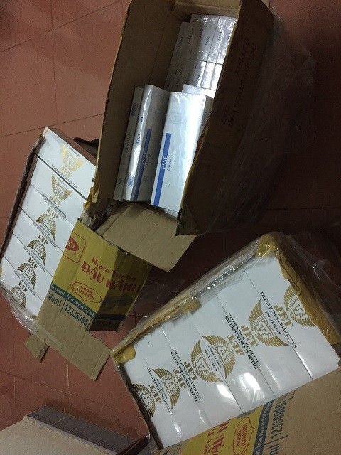 Qua quá trình kiểm tra, tổ công tác phát hiện trên xe có hơn 1.000 bao thuốc lá nhãn hiệu Jet, 400 bao thuốc lá Esse không rõ nguồn gốc xuất xứ.