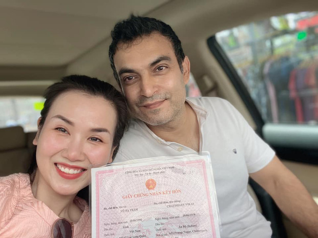 Cụ thể, nữ ca sĩ tiết lộ: "Cưới nhau 2 năm rồi giờ mới mần xong cái giấy kết hôn. Bời vì, nước Ấn và nhiều nước không có giấy chứng nhận độc thân như nước mình nên để mần được cái giấy đó tại Ấn thật sự gian truân. Cuối cùng thì hôm nay chúng tôi đã chính thức thành vợ chồng hợp pháp nha bà con. Mừng rớt nước mắt!".