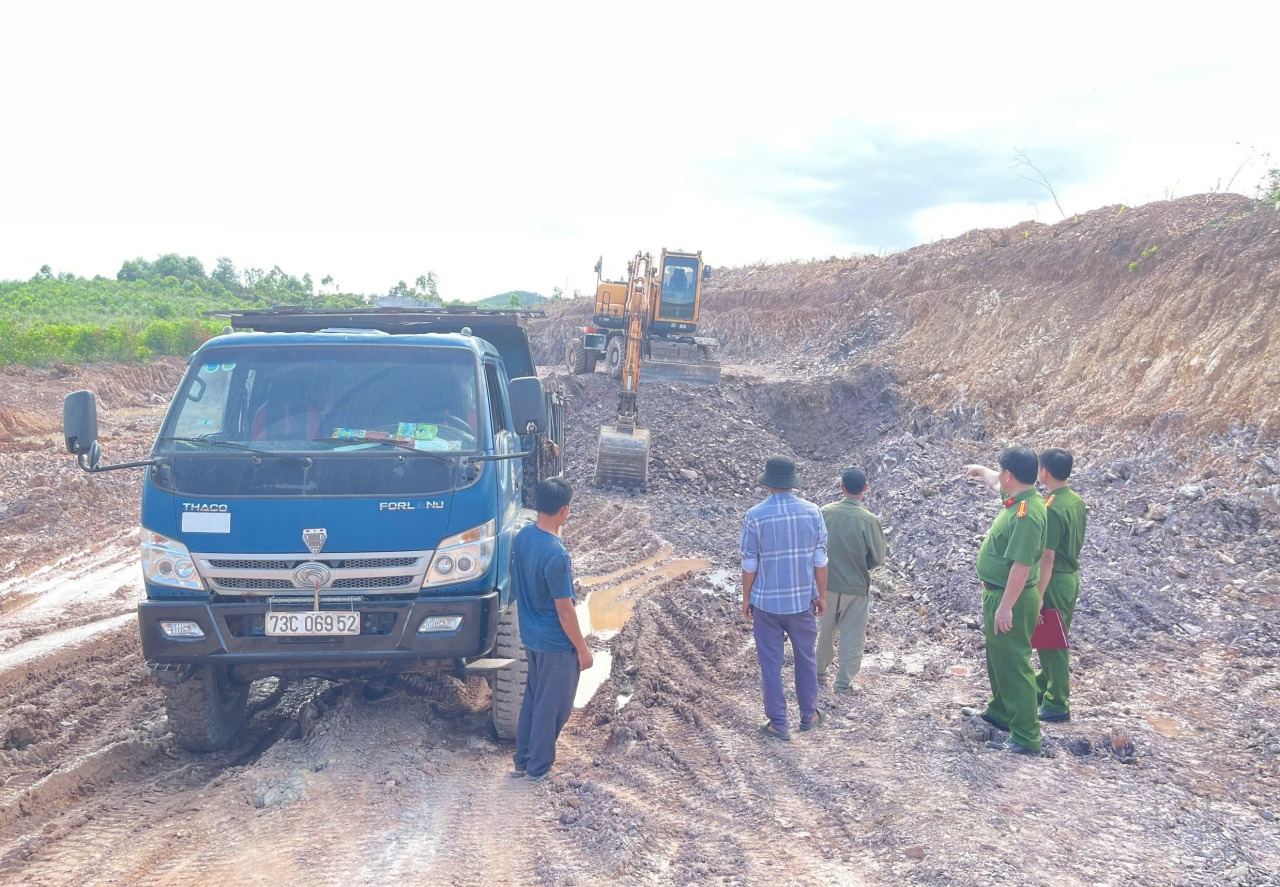 Theo Công an tỉnh Quảng Bình, vào khoảng 13h30 ngày 29/5, tổ công tác của Phòng Cảnh sát kinh tế, Công an tỉnh chủ trì phối hợp với UBND xã Quảng Lưu và Công an xã Quảng Lưu (huyện Quảng Trạch) kiểm tra, phát hiện 3 đối tượng đang có hành vi khai thác, vận chuyển đất trái phép tại khu đất thuộc thôn Phù Lưu, xã Quảng Lưu, huyện Quảng Trạch.