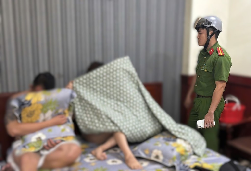 Trước đó, vào khoảng 21h30, ngày 27/2, Công an phường kiểm tra hành chính nhà nghỉ N.K1 thuộc khu phố 7 của phường phát hiện tại phòng 107, lầu 1 có 1 cặp nam, nữ đang thực hiện hành vi mua bán dâm.
