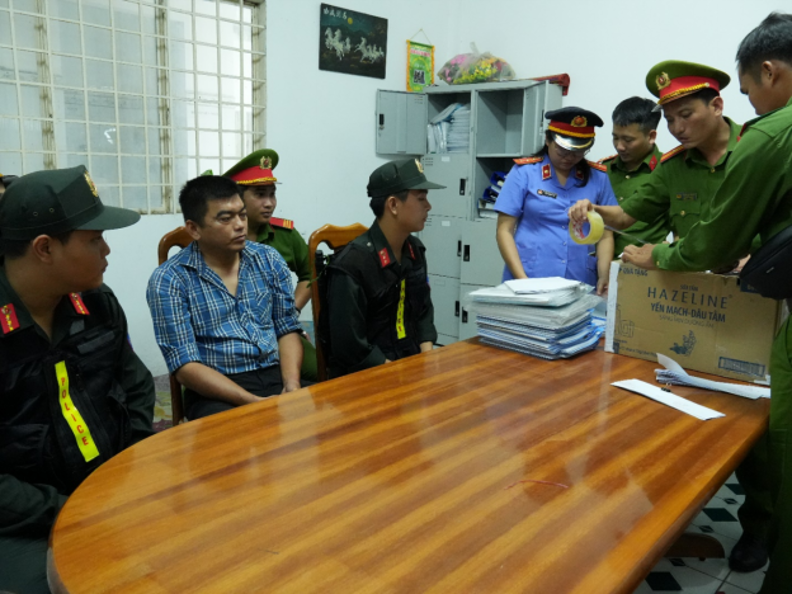 Sau khi thực hiện lệnh bắt tạm giam, Cơ quan Cảnh sát điều tra tiến hành khám xét nơi làm việc của bị can Ngô Minh Khang tại trụ sở Công ty Cổ phần đăng kiểm Hậu Giang 95-01D ở thị trấn cái Tắc, huyện Châu Thành A, tỉnh Hậu Giang.