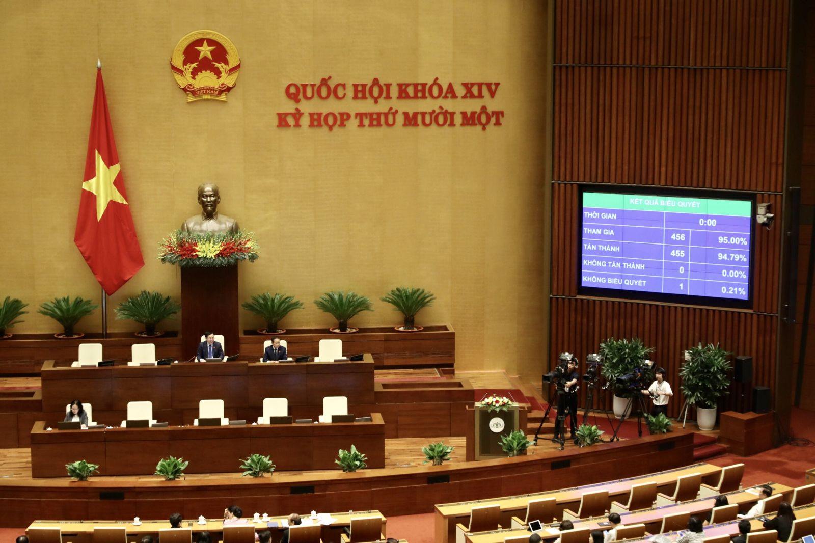 Với 455/456 đại biểu Quốc hội biểu quyết tán thành, sáng 1/4, tại phiên họp toàn thể ở Hội trường, Quốc hội đã biểu quyết thông qua Nghị quyết bầu một số Phó Chủ tịch Quốc hội.