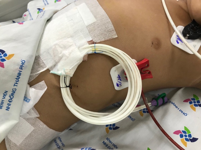 Hiện, bé trai tỉnh táo, được áp dụng chế độ ăn thích hợp qua ống thông này và đang được theo dõi, nội soi tiêu hóa đánh giá tổn thương, báo Công an TPHCM thông tin thêm.