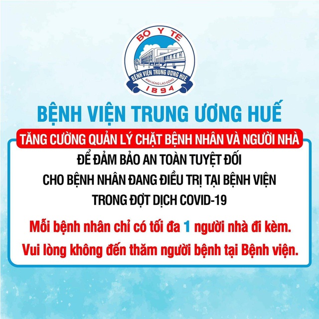 Ngoài ra, các cán bộ, nhân viên đang làm việc ở Bệnh viên Trung ương Huế tuyệt đối không được đi ra ngoài phạm vi tỉnh Thừa Thiên Huế. Bệnh viện sẽ có hình thức kỷ luật và cách ly nếu vi phạm.