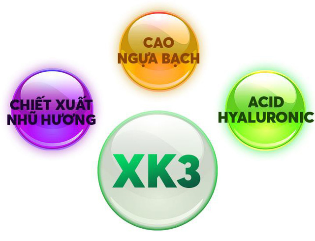 Họat chất XK3 là sự kết hợp giữa 3 nguyên liệu quý giá: Chiết xuất Nhũ hương, Cao ngựa bạch và Acid Hyaluronic.
