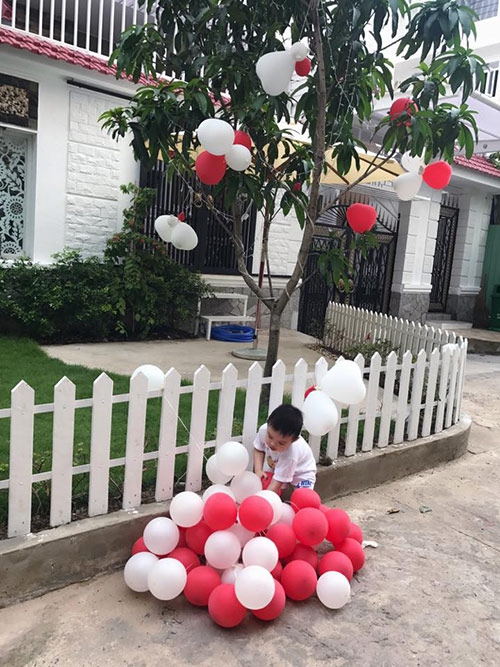 Căn biệt thự đẹp "ngất ngây" này từng được Vy Oanh chia sẻ khi tổ chức sinh nhật cho chồng. Nữ ca sĩ viết những lời ngọt ngào dành đến chồng yêu: "Cảm ơn ba mẹ đã sinh ra ông xã, cảm ơn ông xã đã sáp vô em, 2 đứa mình đến với nhau. Cảm ơn con trai đã phụ mẹ làm sáng bừng 1 góc nhà, món quà nho nhỏ tặng cho ba..."