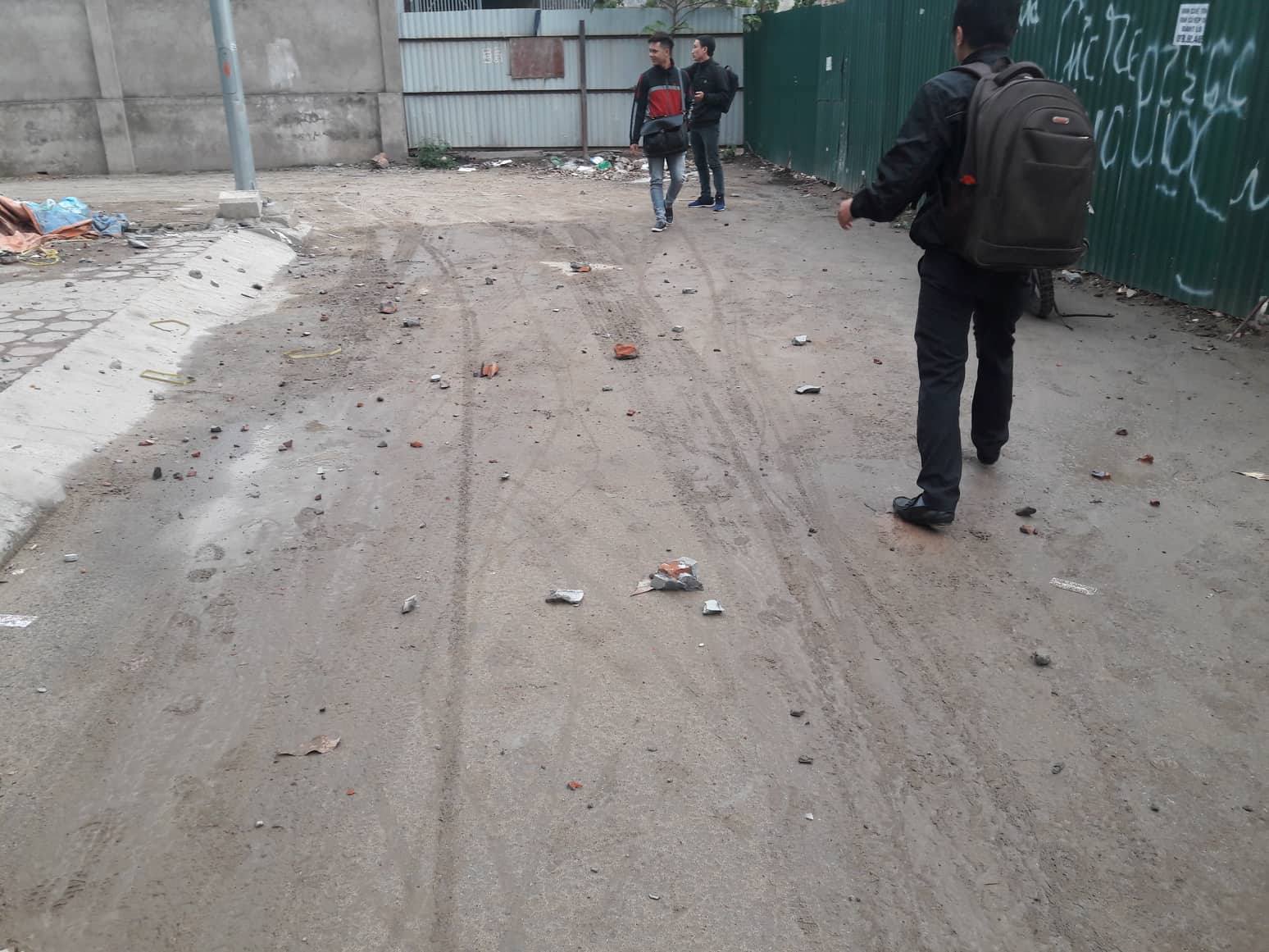 Việc phá dỡ không được che chắn khiến gạch vữa văng ra đường rất nguy hiểm cho người và phương tiện qua lại.