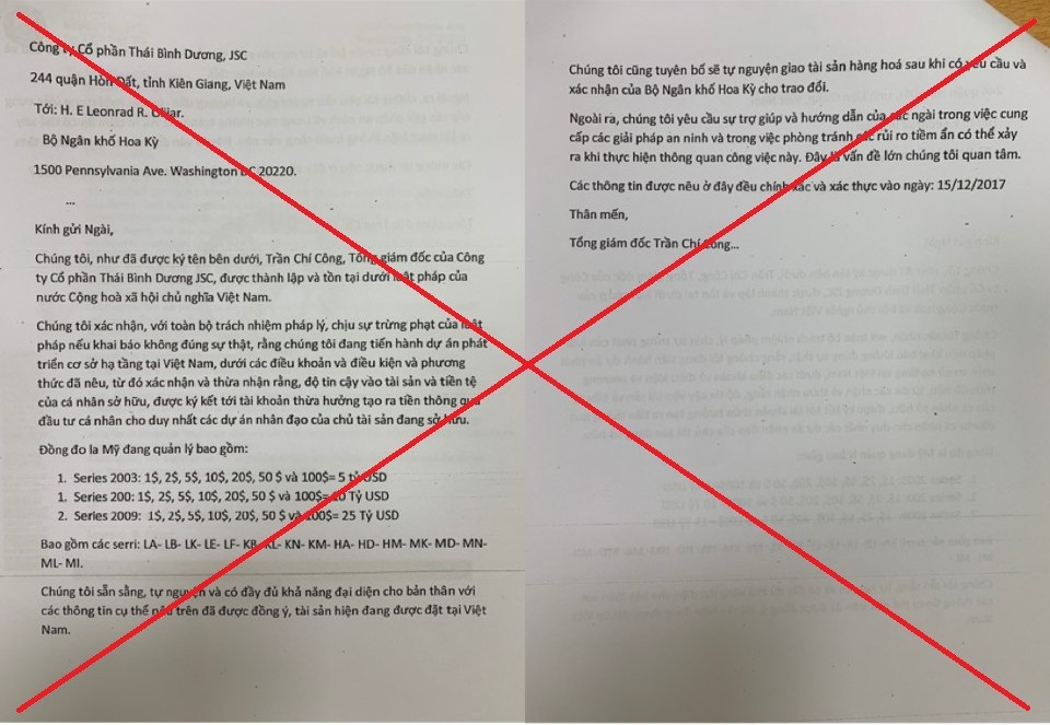Bộ Công an cảnh báo thủ đoạn chung của các đối tượng đó là thành lập doanh nghiệp nhưng không có hoạt động sản xuất kinh doanh; trực tiếp hoặc thông qua các cá nhân, doanh nghiệp trong nước lập các bộ hồ sơ gửi tới các cơ quan của Đảng, Chính phủ đề nghị xem xét, giải quyết cho tiếp nhận, giải ngân nguồn vốn đầu tư nước ngoài, khai thác kho báu... có sử dụng giấy tờ giả mạo của các ngân hàng, tổ chức tài chính lớn như hối phiếu/trái phiếu quốc tế, điện chuyển tiền (SWIFT-MT103), chứng từ bảo lãnh, chứng nhận sở hữu tài sản, di sản thừa kế có giá trị hàng triệu đến hàng ngàn tỷ USD, EUR...; thậm chí sử dụng các văn bản tiếp nhận đơn, thư, phiếu giải quyết văn bản của các cơ quan nhà nước để lấy mẫu dấu, chữ ký và làm văn bản giả mạo để hoạt động lừa đảo, chiếm đoạt tài sản.