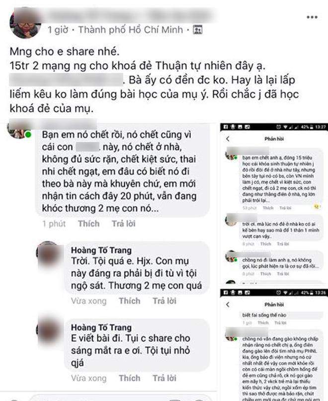 Đáng nói, có thông tin trong quá trình mang thai, người mẹ này đã thu thập thông tin, học theo cách sinh con “thuận theo tự nhiên” được chia sẻ trên mạng xã hội, với chi phí khóa học là 15 triệu đồng. Trong quá trình sinh, em bé bị ngạt còn người mẹ kiệt sức. Cả mẹ và con cùng tử vong.