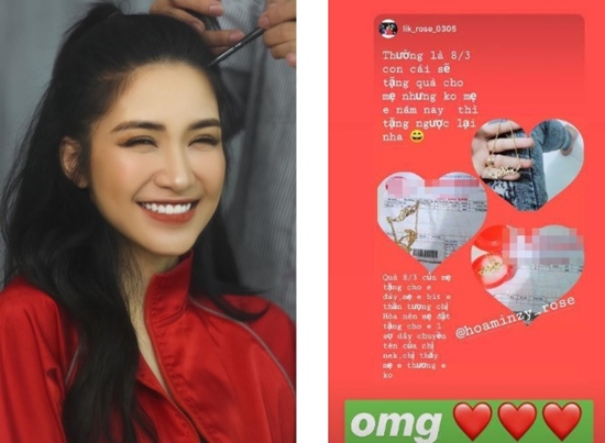 Trên trang cá nhân, Hòa Minzy háo hức khoe món quà đặc biệt mà người hâm mộ tặng cô nhân dịp 8/3. Trong ảnh, nữ ca sĩ đăng tải hình ảnh sợi dây chuyền có khắc tên của giọng ca quê Bắc Ninh và những lời chia sẻ xúc động từ fan.