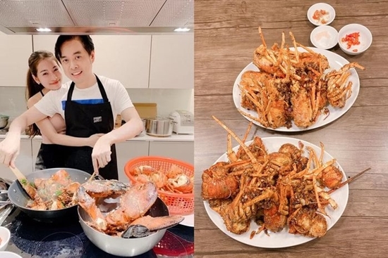 Nhạc sĩ cho biết việc anh vào bếp nấu ăn có lẽ không còn quá xa lạ với vợ, thế nên nhân dịp này, anh đã quyết định nấu những món ăn "đặc biệt" hơn đó chính là món tôm hùm cháy tỏi.