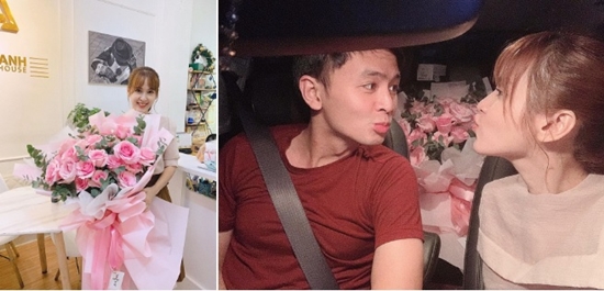 "Tối qua, anh bạn Mập rủ lên phòng để tạo bất ngờ sớm. Chúc một nửa thế giới sẽ thật hạnh phúc và xinh đẹp trong ngày đặc biệt này nhé", cô viết.
