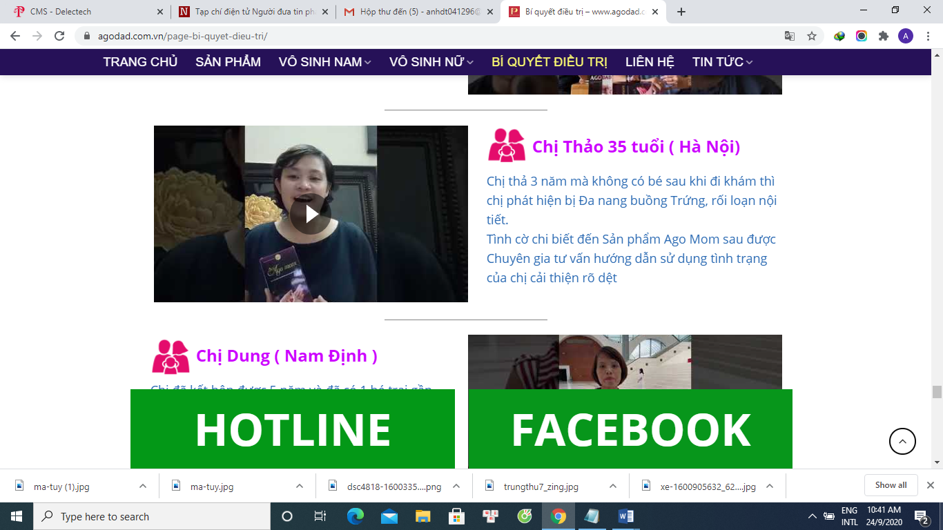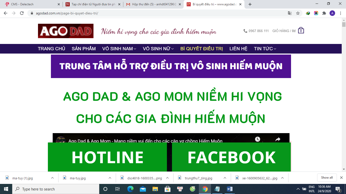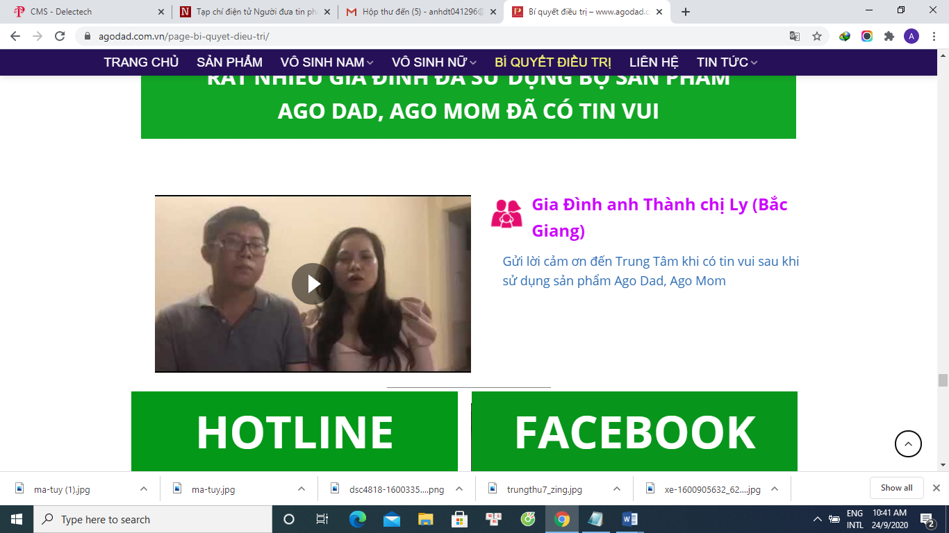 Theo tìm hiểu của PV trên ba trang mạng: agodad.com.vn, chuyenchuavosinh.com và Facebook Điều trị Vô sinh - Hiếm muộn, với các đầu số điện thoại tư vấn lần lượt là: 09678661**, 03737972**, 08982529** có dấu hiệu quảng cáo, tư vấn bán sảm phẩm TPBVSK Ago Dad, Ago Mom như một loại thuốc chữa vô sinh, hiếm muộn.
