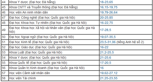 Điểm chuẩn là tổng điểm của ba môn thi THPT quốc gia theo tổ hợp xét tuyển, trong đó một số môn có thể nhân hệ số 2.