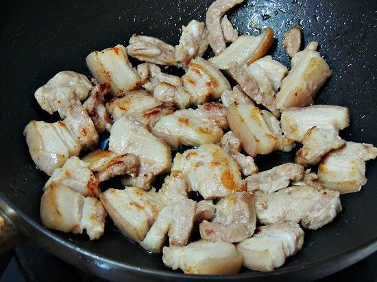 Để làm món thịt ba chỉ rang cháy cạnh thì bạn nên dùng chảo lòng sâu, cho thịt vào chảo rồi bật bếp nấu với lửa vừa. Khi rang, thịt sẽ tự động tiết ra mỡ nên không cần thêm dầu ăn hay mỡ lúc ban đầu, chỉ cần đảo đều tay để thịt không bén vào chảo là được.