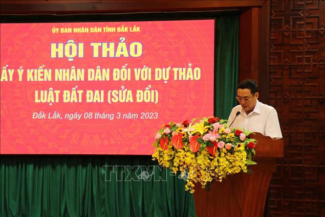Phát biểu kết luận Hội thảo, Phó Chủ tịch UBND tỉnh Đắk Lắk Võ Văn Cảnh nhấn mạnh: UBND tỉnh tiếp thu tất cả các ý kiến của các cơ quan, tổ chức, cá nhân trên địa bàn tỉnh và UBND các huyện, thị xã, thành phố. UBND tỉnh giao Sở Tài nguyên và Môi trường rà soát, tổng hợp các ý kiến, trên cơ sở đó xây dựng dự thảo báo cáo của UBND tỉnh về kết quả lấy ý kiến nhân dân đối với dự thảo Luật để gửi Bộ Tài nguyên và Môi trường, đảm bảo đủ nội dung và đúng thời gian quy định. Đồng thời, các cơ quan, tổ chức và UBND các huyện, thị xã, thành phố khẩn trương gửi báo cáo kết quả lấy ý kiến nhân dân đối với dự thảo Luật về Sở Tài nguyên và Môi trường để tổng hợp; các cơ quan, tổ chức, cá nhân tiếp tục nghiên cứu, góp ý và gửi Đoàn đại biểu Quốc hội tỉnh tổng hợp, góp ý tại các phiên thảo luận của Quốc hội.