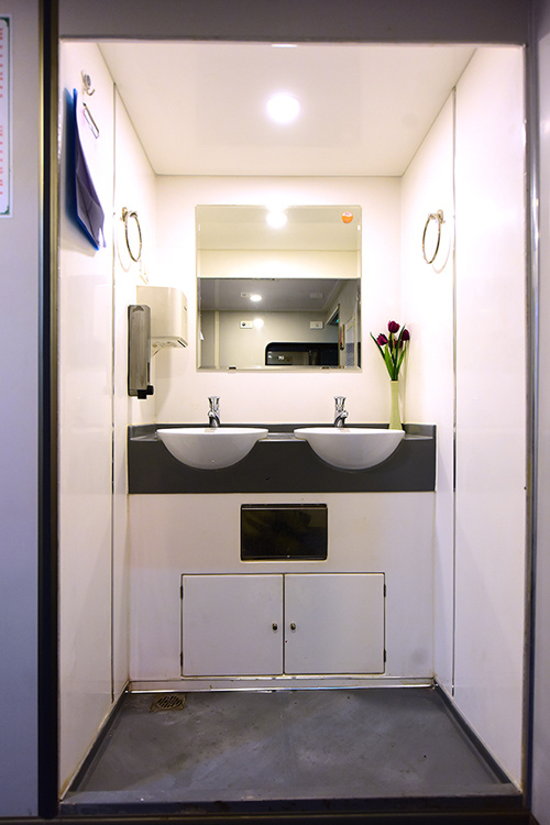 Buồng vệ sinh có điều hòa không khí, thiết bị vệ sinh tự hoại theo nguyên lý hoạt động của hệ thống Microphor của Mỹ, hệ thống xử lý chất thải đảm bảo tiêu chuẩn vệ sinh môi trường.