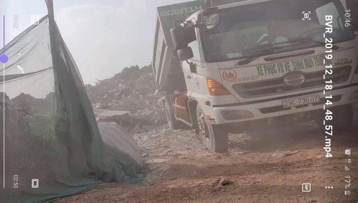 Cũng theo phản ánh, nhiều xe ô tô của đơn vị xử lý chất thải xây dựng này còn không che chắn theo đúng quy định khi tham gia giao thông khiến bụi và chất thải vương vãi ra môi trường.