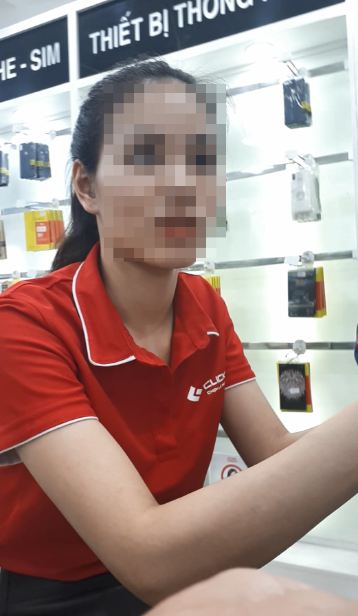 Một nhân viên nam cũng thuộc chi nhánh của Công ty ClickBuy tại Nguyễn Trãi không ngần ngại chia sẻ thêm: “Hàng điện thoại bên em khẳng định là hàng xách tay nên không bị mất thuế, nó không phải hàng VN/A của Việt Nam. Đây là hàng nước ngoài xách về, không phải đóng hải quan, tất cả hàng nguyên hộp, nguyên seal, bảo hành anh yên tâm rồi, lỗi 1 đổi 1 trong 1 năm. Khách hàng mà muốn xuất hóa đơn đỏ thì cũng được nhưng phải xuất sang máy khác.”