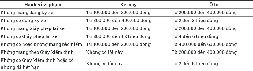 Khi thiếu mỗi loại giấy tờ khác nhau, tài xế sẽ bị phạt các mức khác nhau. Cụ thể: