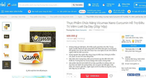 Theo đó, trong thời gian vừa qua trên website trên có quảng cáo sản phẩm thực phẩm bảo vệ sức khỏe Vi-Cumax Nano Curcumin vi phạm quy định quảng cáo, có dấu hiệu lừa dối người tiêu dùng.