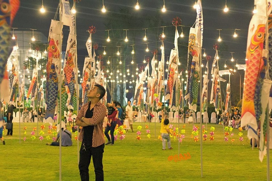 “Cánh đồng cá Koi” ở Sài Gòn, những diều cá không được treo trên sào tre như phiên bản gốc nhưng có nhiều kích thước màu sắc khác nhau rất rực rỡ.
