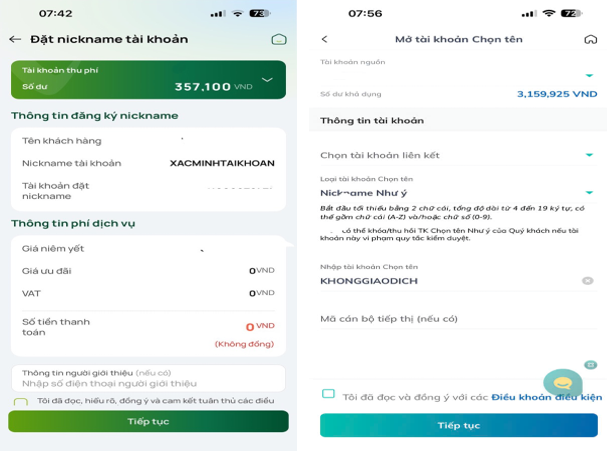 Nickname cho tài khoản dùng để có thể thay những số tài khoản dài hàng chục chữ số thành một cái tên ngắn gọn hơn (thay thế các số tài khoản chuyển và nhận tiền, thực hiện các giao dịch như bình thường). Đặt nickname theo số tài khoản được thực hiện online qua app của ngân hàng, với thao tác vô cùng nhanh chóng và dễ dàng, đặc biệt hơn khi nickname có thể thay đổi hoặc xóa một cách nhanh chóng ngay trên ứng dụng, không phải ra trực tiếp ngân hàng.