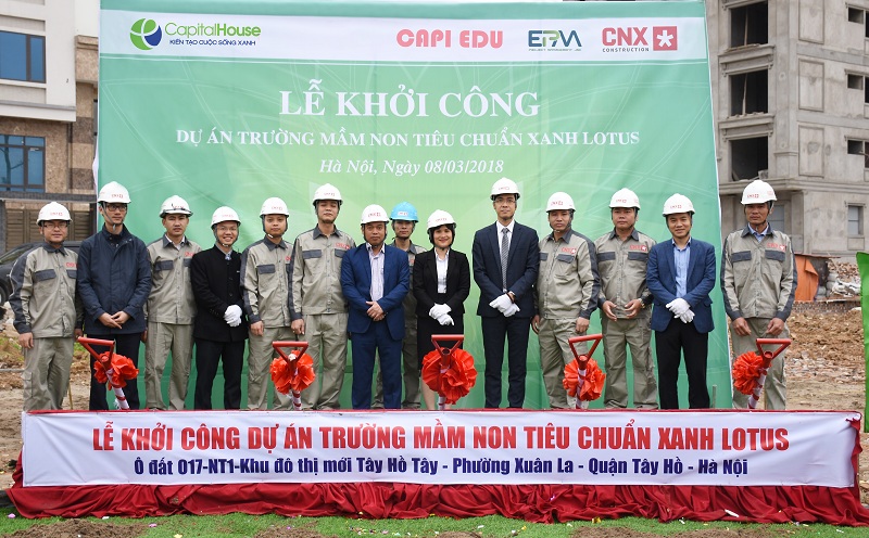 Công trình trường mầm non thuộc hệ thống giáo dục Capi Edu được thi công bởi nhà thầu Công ty Cổ phần Xây dựng Công nghệ xanh - một công ty đã có kinh nghiệm thi công rất nhiều dự án công trình xanh tại Hà Nội. Ngay tại buổi lễ, đại diện tập đoàn Capital House, đại diện công ty Quản lý dự án EPM, đại diện đơn vị thi công Công nghệ xanh, đại diện hệ thống giáo dục Capi Edu đã đưa ra những cam kết về chất lượng cũng như tiến độ thi công của dự án.