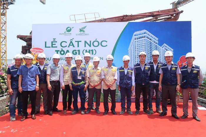 Trước đó, vào ngày 28/6, dự án Sunshine Garden đã cất nóc toà đầu tiên G3 (H3). Chỉ trong một thời gian ngắn, việc cất nóc cả hai tòa ghi nhận sự nỗ lực, quyết tâm của Sunshine Group trong việc thi công, hoàn thiện để bàn giao nhà sớm nhất cho cư dân. .