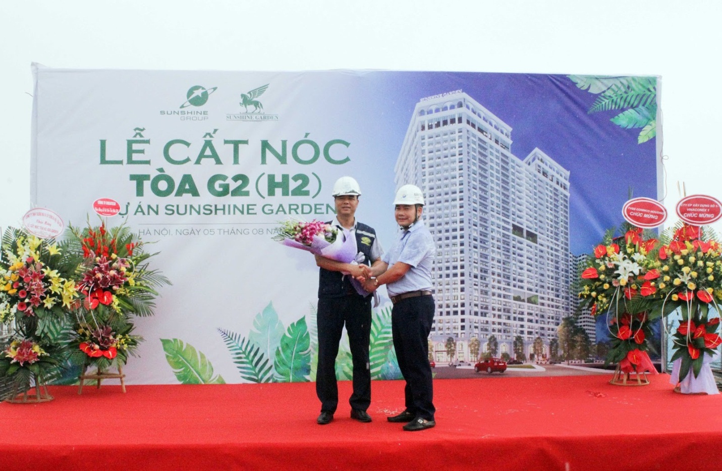 Cụ thể, ngày 28/6 vừa qua, Sunshine Garden đã cất nóc tòa đầu tiên G1. Sau đó không lâu, dự án này tiếp tục cất nóc tòa thứ 2 – G3 và mới đây, ngày 5/8, cất nóc tòa còn lại G2.