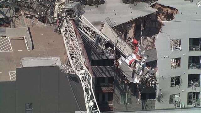 Một đoạn video do người dân ghi lại cho thấy cần trục bị gió thổi rơi xuống khu nhà phức hợp Elan City Lights, theo KTVT-TV. Isaiah Allen, người sinh sống trong khu nhà, mô tả khoảnh khắc vụ việc diễn ra như sấm sét đánh trúng tòa nhà. Allen cho biết anh đã chứng kiến một người phụ nữ đầy máu me bị mắc kẹt trong căn hộ của bà ở tầng 2.